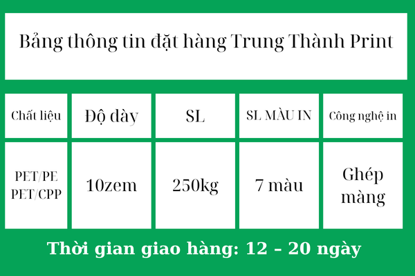Trung Thành Print chuyên sản xuất bao bì vải sấy khô chất lượng cao, thiết kế tinh tế đáp ứng tiêu chuẩn an toàn thực phẩm và phù hợp với mọi doanh nghiệp.